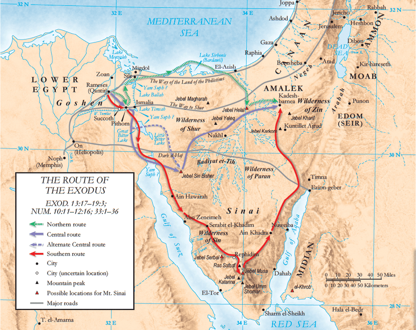 After the triumph of the Red Sea crossing the Israelites are now faced with the task finding food and drink for a nation of people who are wandering in the desert. After about 3 months of wandering the Israelites arrive at Mount Sinai here they camp, Moses receives his first vision of God, and the Israelites prepare to receive the terms of their covenant with Yahweh. The Israelites have become quite agitated after leaving their home (such as it was) for the uncertainty of the desert and now they wonder what are they going to hear from God